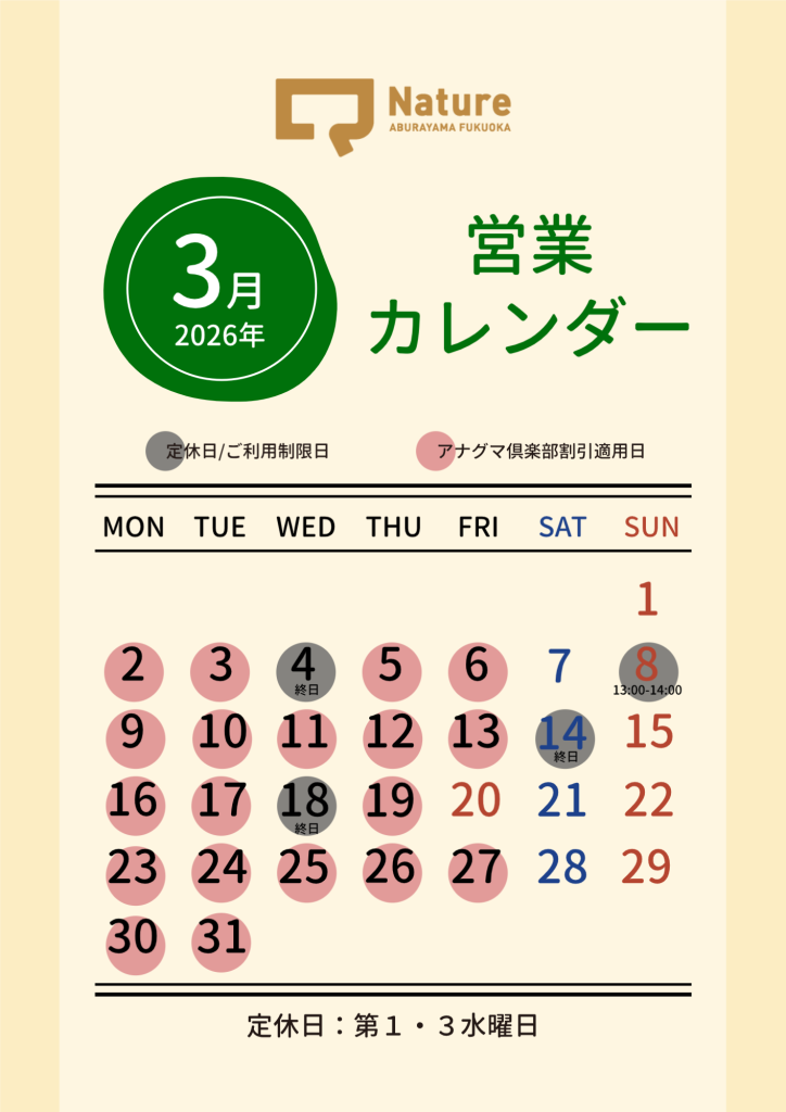 いつもQ-Nature ABURAYAMA FUKUOKAをご利用いただき、ありがとうございます。